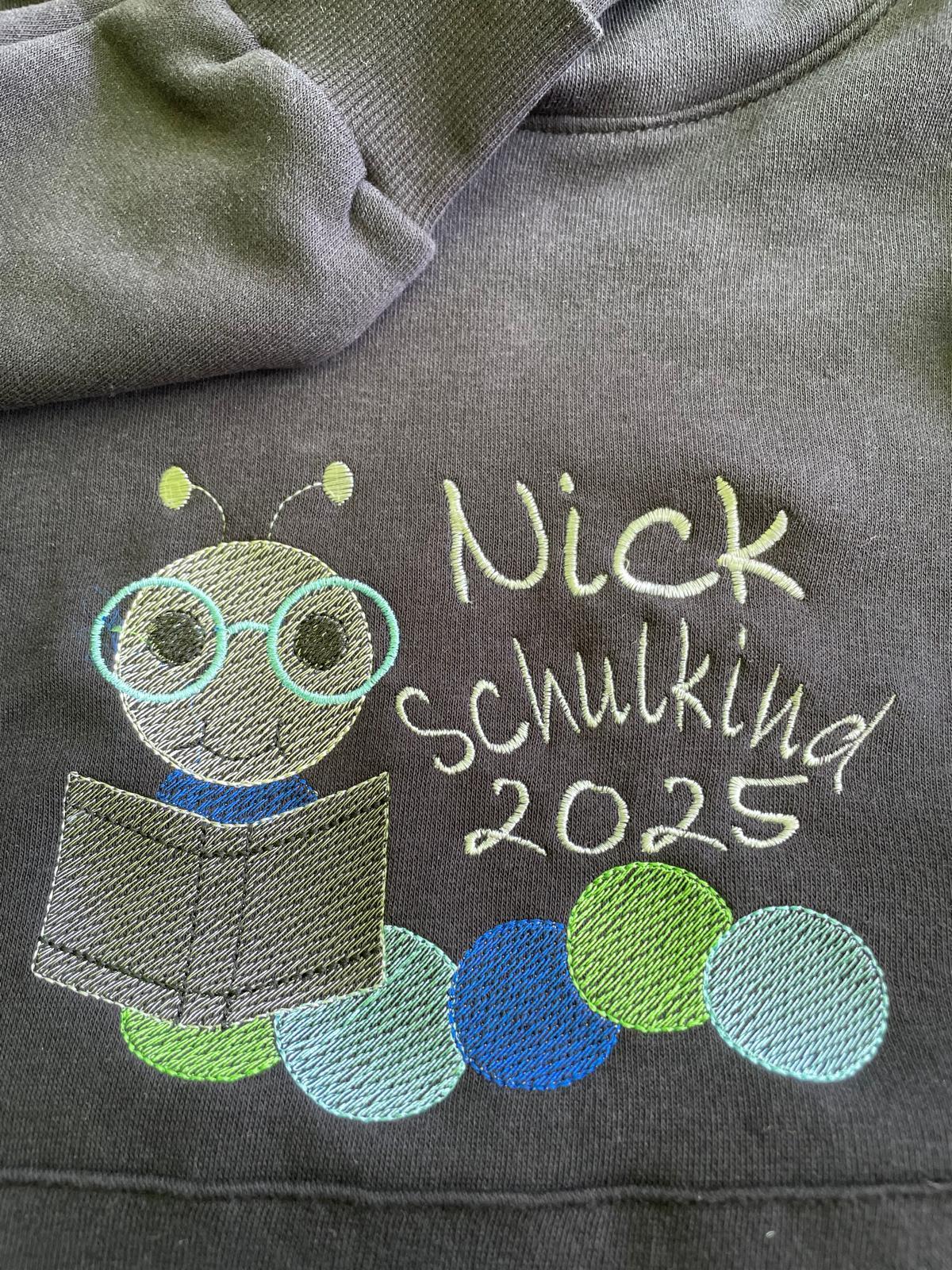 Kontaktieren Sie uns mit Ihrem Wunschmotiv – wir setzen Namen, Datum oder individuelles Motiv als professionelle Stickerei auf Rucksack, T-Shirt oder Handtuch um.
