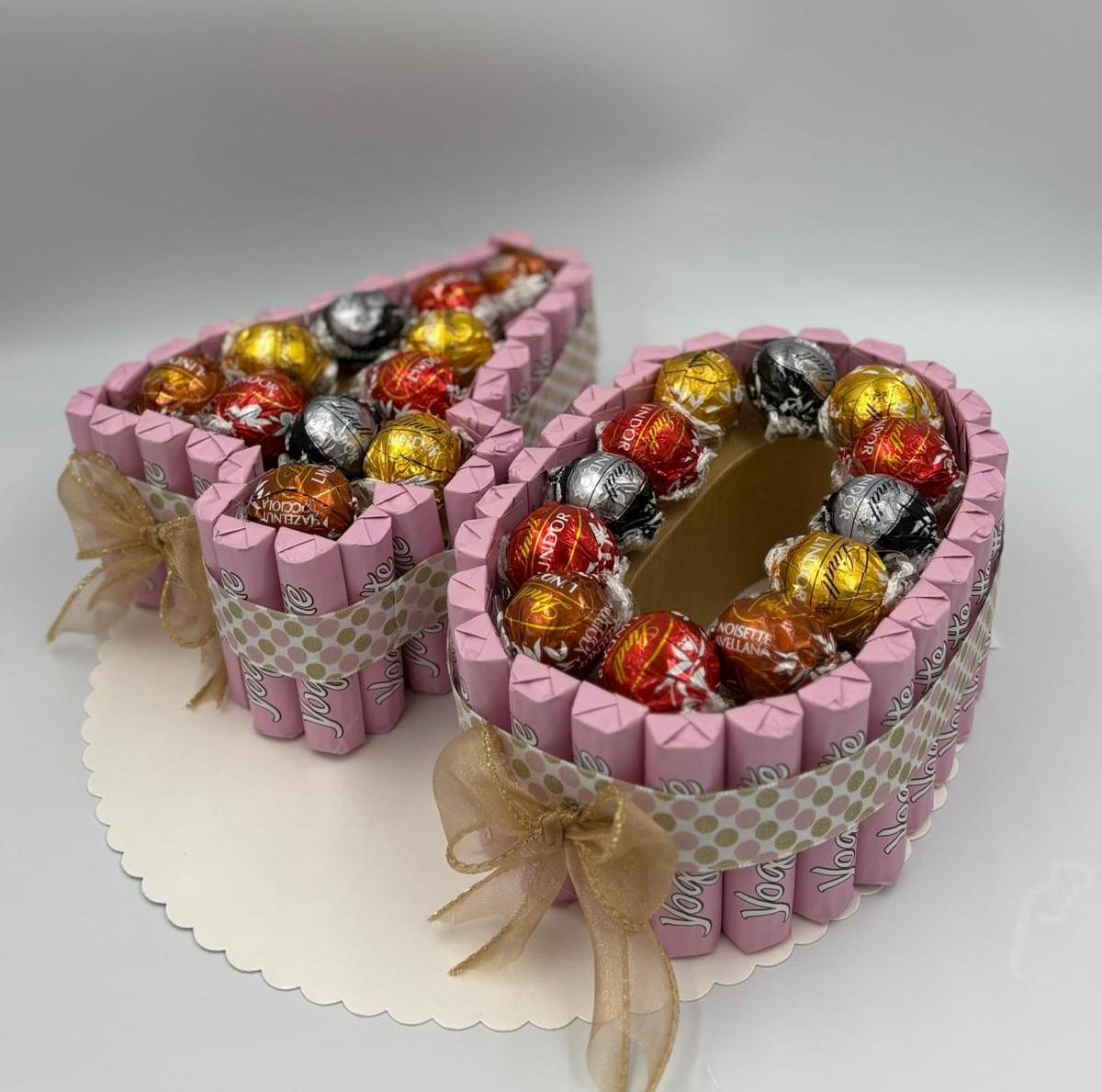 Diese Pralinentorte ist in der Form der Zahl 40 gestaltet. Auf Wunsch kann die Torte auch in anderen Zahlenformen hergestellt werden – bitte vorher individuell mit uns absprechen.